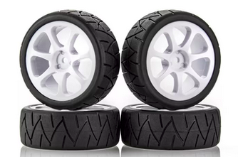 Gomme touring car Team Powers 32M (4 pezzi) già incollate su cerchio pieno.